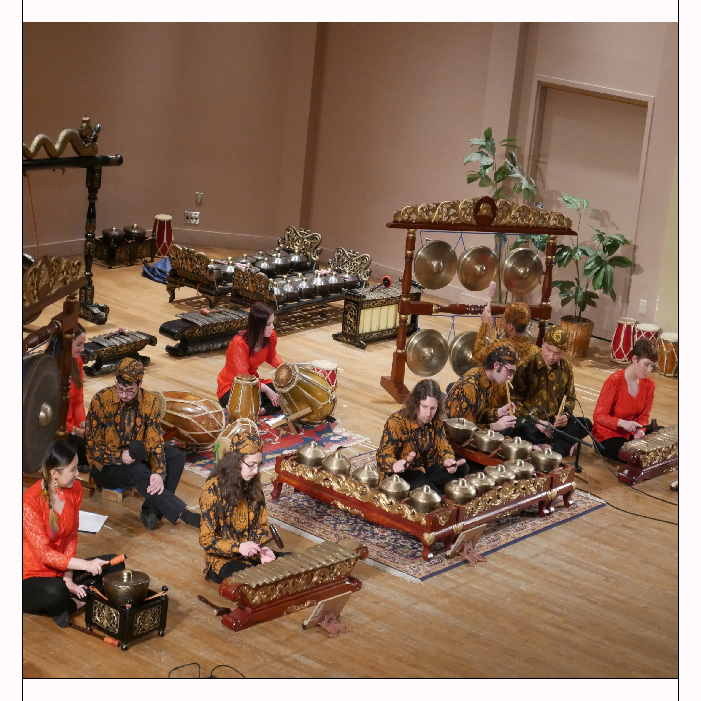 A gamelan is a set of mostly percussive instruments featuring tuned bronze gongs, bronze-keyed instruments, and drums. In the beginning of ensemble, students will learn how to perform simple compositions on several instruments as well as the basic organizing principles of Javanese traditional music. The advanced ensemble is made up of students invited to join after at least one semester of beginning gamelan. Students in the advanced group will learn more complex instruments and pieces. The ensemble will also perform publicly at least once every year.